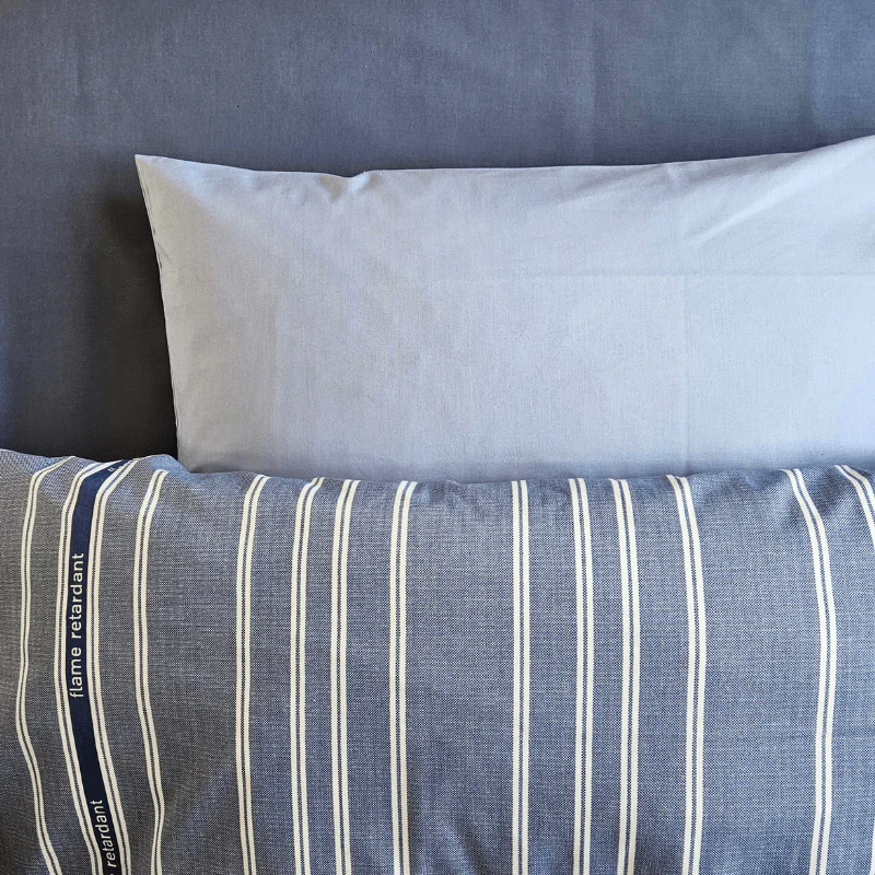 Blauw brandvertragend laken van 100% zacht katoen. Dit laken is speciaal behandeld met een zelfdovend materiaal, waardoor het niet kan ontbranden.