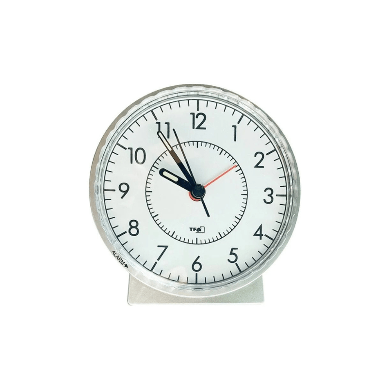 Der Wecker hat große, leicht ablesbare Zahlen und ist super einfach zu bedienen. Um den Alarm einzustellen, drehst du das Glas, bis der rote Zeiger auf die gewünschte Uhrzeit zeigt. Mit einer einfachen Schlummerfunktion kannst du den Alarm problemlos um 5 Minuten verschieben, wenn du etwas mehr Ruhezeit benötigst. Der Schlummerknopf aktiviert auch ein sanftes Licht, sodass du das Display leichter sehen kannst, wenn du die Uhrzeit im Dunkeln überprüfen möchtest.
