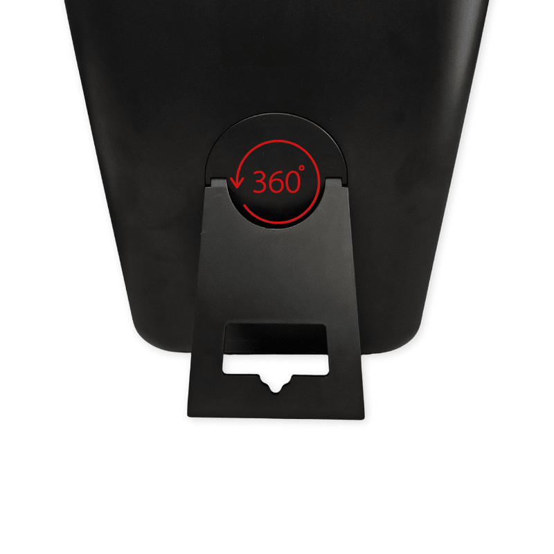 Der Ständer auf der Rückseite des Spiegels kann um 360° gedreht werden, sodass der Spiegel aus verschiedenen Winkeln verwendet werden kann. Wenn der Ständer eingeklappt ist, kann der Spiegel zudem an die Wand gehängt werden.