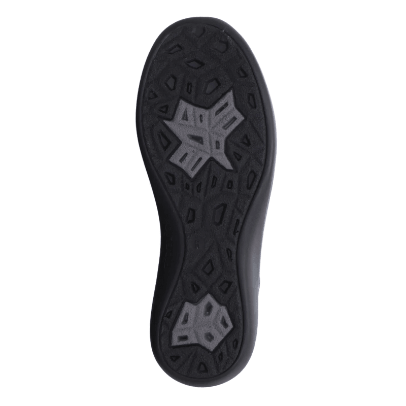 Der Schuh verfügt über ein herausnehmbares, anatomisches Fußbett mit einer Innensohle aus weichem Naturkork, das eine gute Stoßdämpfung und hohen Komfort bei längerem Tragen bietet. Die weiche Polsterung um den Vorfuß und die Fersenkappe sorgt für einen druckfreien, bequemen Sitz, und die rutschfeste Gummiaußensohle bietet guten und festen Halt.