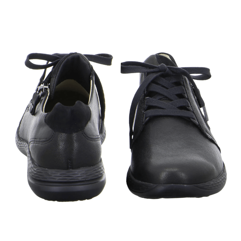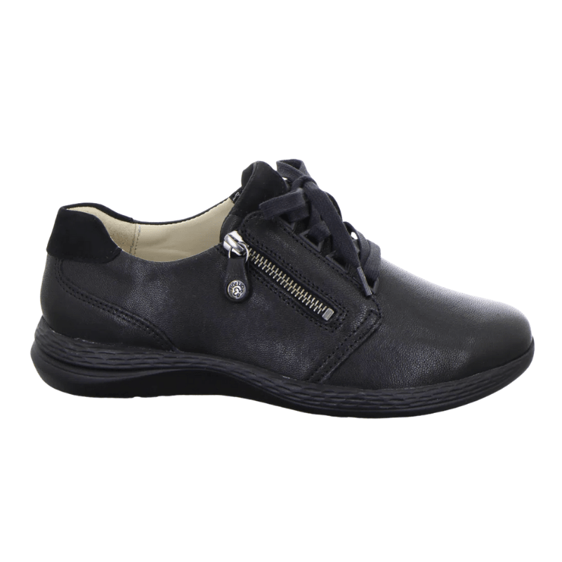 Schwarzer Fidelio Sneaker mit einem Obermaterial aus Leder und Multi-Stretch für optimalen Komfort, Haltbarkeit und Flexibilität. Der Schuh hat Schnürsenkel und einen seitlichen Reißverschluss und ist für den Alltagsgebrauch geeignet.