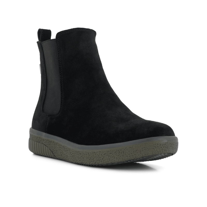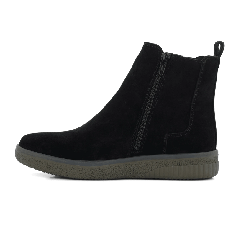 Eleganter und praktischer Damenstiefel von Green Comfort in schwarzem Wildleder mit Lederdetails. Der Stiefel ist mit weicher Wolle gefüttert und verfügt über eine wasserabweisende Rain-tex Membran, die deine Füße warm und trocken hält, egal bei welchem Wetter.