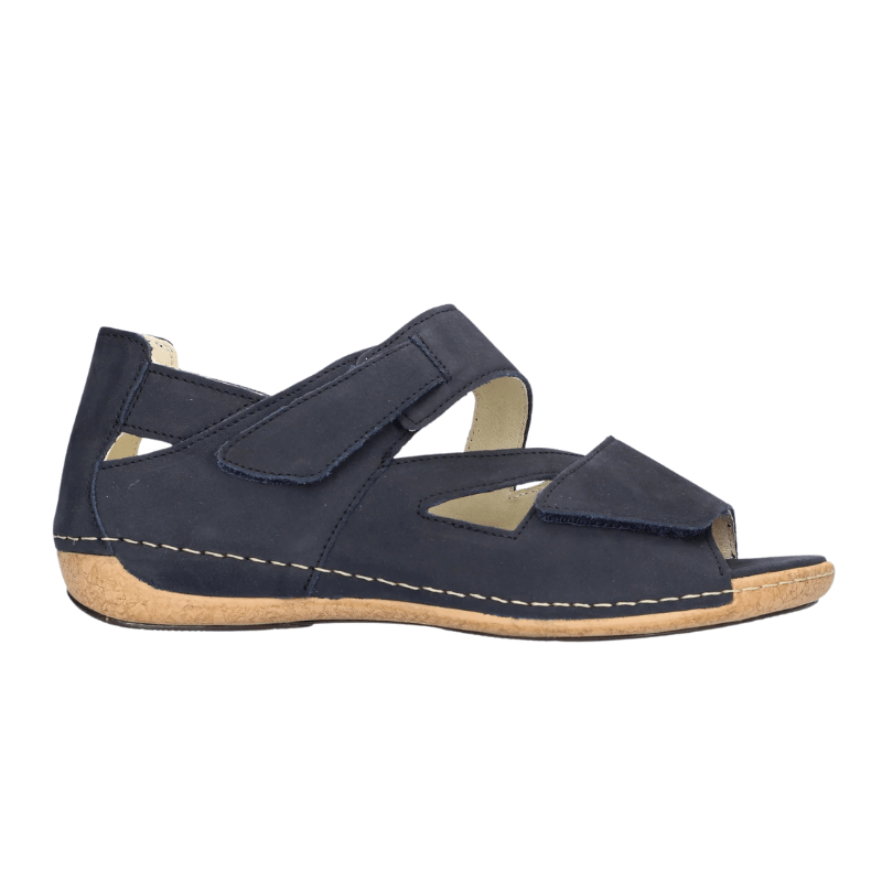 Blaue Waldläufer Damen-Sandale mit Obermaterial aus weichem Nubukleder, das den Füßen atmen lässt und den ganzen Tag über Komfort bietet.