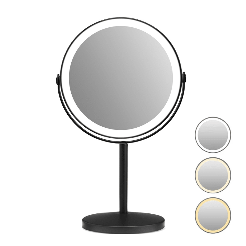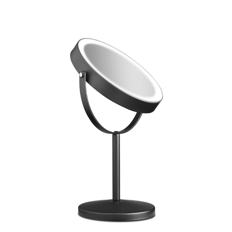 Oplaadbare LED-tafelspiegel met krachtige, geïntegreerde LED-verlichting die instelbaar is in drie verschillende lichtnuances: warm, neutraal en koud. Met een discrete touch-knop aan de zijkant bedien je eenvoudig zowel aan/uit, keuze van lichtkleur als de aanpassing van de lichtsterkte met de ingebouwde dimfunctie.
